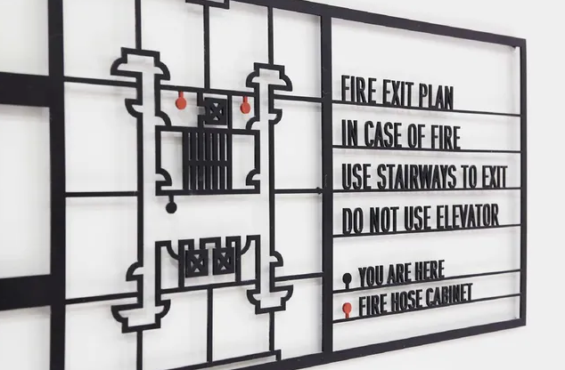 建筑内公共空间的定位性导视标识,包括各教室,办公室,实验室等各功能性房间的门牌,楼层平面分布图等,这些定位性导视标识需要设置在显眼的位置,方便来访者查看,可以让人们标牌设计迅速找到正确的方向,定位性导视标识系统是校园环境信息传达的直接载体,除了作为功能性的信息指示之外,不同样式,色彩,材质的导视标识标识也可以为校园的不同功能区域的建筑空间给予具有特色的形象地位。