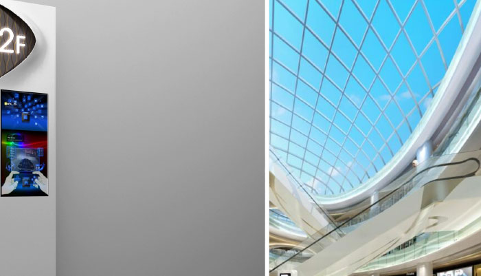 Then we go to the shopping mall interior to choose the logo material, we can choose two different logo materials for the customer part and the interior. Different feelings can be created through the shopping mall Signage material, creating the Signage atmosphere of the entire shopping mall. When choosing the material of the shopping center here, we need to study with Party A together, and choose different materials according to Party A's budget.