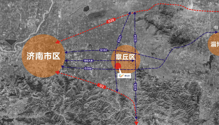 华侨城欢乐荟位于济南市章丘区,地处章丘区绣源河风景区,项目为济南市与淄博市连接中轴线位置,是联通济南市与淄博市的交通枢纽,项目处于G309(经十东路),绣源东街(工业六路)交汇处,项目西距济南市区40公里(大明湖站),西距淄博市50公里(淄博市客运中心),距离济南遥墙国际机场约45公里(约60分钟车程)。