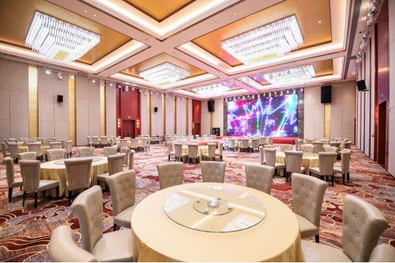 酒店拥有2间豪华宴会大厅,配备有贵宾接待室、4个不同规格会议室。设施设备齐全,且拥有现代化的顶尖数字会议指示系统、投影系统及最先进的灯光音响设备。